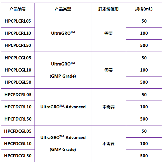 符:Helios可提供的血清替代物的所有產(chǎn)品和規(guī)格: