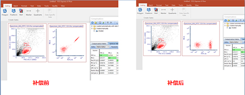點擊OK,則FITC滲漏到PE通道的熒光被扣除。