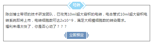 第二,可以通過簡單擴大加壓電擊管的容積來實現(xiàn)大容量細(xì)胞電轉(zhuǎn)。