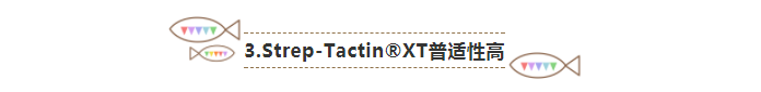 而Strep-tag?(包含Strep-tag?II或是Twin-Strep-tag?),都是短肽標(biāo)簽,分別為8或28個氨基酸,一般不干擾蛋白折疊或活性,因此適合用于蛋白功能性研究[5]。Strep-tag?可以特異性地結(jié)合在Strep-Tactin?(二代介質(zhì))或Strep-Tactin?XT(三代介質(zhì))的生物素的結(jié)合位點。洗脫時使用的脫硫生物素(適用于二代)或生物素(三代),對同樣的結(jié)合位點有更高的親和力,能將目標(biāo)蛋白從同樣位置移除,因此得到的目標(biāo)蛋白純度一般高于95%[12]。