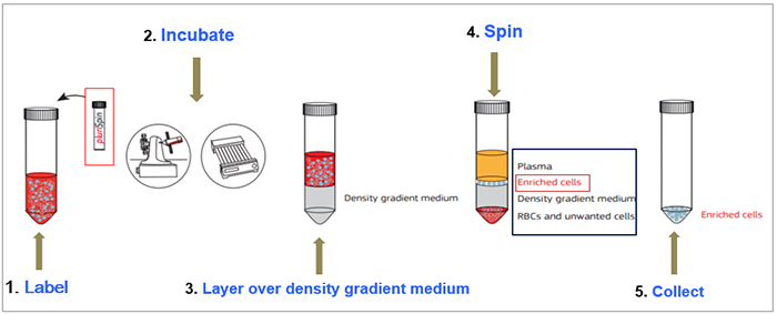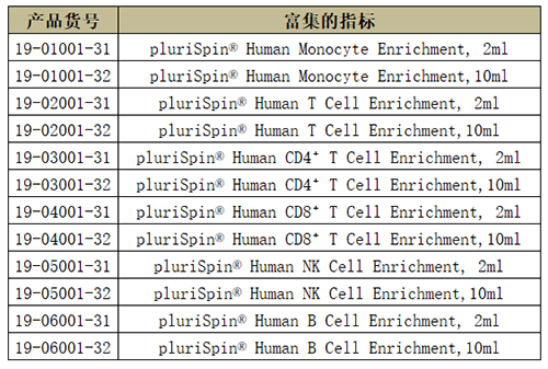 針對少量全血樣本通過淋分液分離PBMC時(shí)細(xì)胞損失太多或分離效果不好時(shí),這里給大家分享pluriSelect另一口碑不錯(cuò)用于全血樣本的富集和耗竭產(chǎn)品,只需要1ml全血樣本與對應(yīng)指標(biāo)的產(chǎn)品按照一定的體積比孵育,然后進(jìn)行break off離心方式就可以達(dá)到對應(yīng)初步的細(xì)胞富集和耗竭效果。能保證了后續(xù)要研究細(xì)胞的得率和純度,同時(shí)獲得的細(xì)胞純凈不帶磁珠。適合的樣本類型包括:PBMC, Buffy Coat, Cord Blood, Bone Marrow, Primary Cell Solution。原理非常簡單實(shí)用也讓小編腦洞大開。