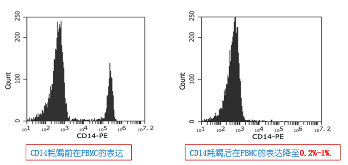 例2:pluriSpin? Human MonocyteDepletion(Cat#19-01002-31),耗竭之后單核細(xì)胞在PBMC的表達(dá)降至0.2%-1%.: