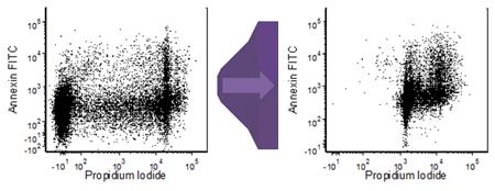 流式細胞分析時,樣本細胞中一般都含有一定量的死細胞,通過一定的方法可以減少樣本中死細胞的比例,但是完全去除樣本中的死細胞幾乎是不可能的。但流式分析的目標為活細胞,因此流式分析時將死細胞當(dāng)作活細胞來分析,會嚴重影響流式分析的結(jié)果,通??梢赃x擇熒光染料來標記區(qū)分死活細胞的方法,下面介紹一些流式分析時區(qū)分死細胞和活細胞的簡單方法。