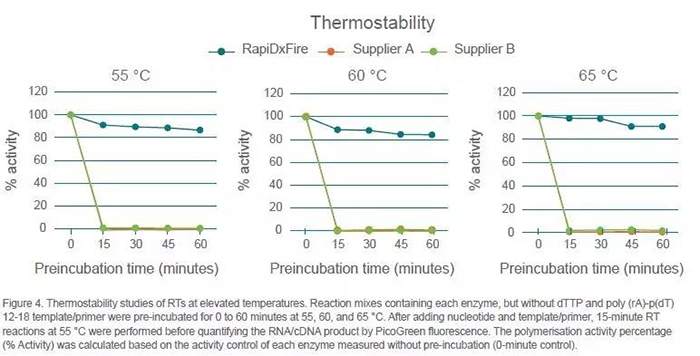 • RapiDxFire耐高溫逆轉錄酶在高溫下表現(xiàn)佳
