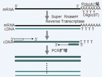 隨機(jī)引物:某些特定mRNA由于含有使反轉(zhuǎn)錄酶終止的序列,比較難以轉(zhuǎn)錄成全長序列時,可采用非特異的隨機(jī)引物來轉(zhuǎn)錄全長mRNA。選擇這種引物,體系中所有RNA分子會全部充當(dāng)DNA第一鏈模板,然后PCR引物在下游擴(kuò)增過程中再擴(kuò)增特異的目的基因。通常,用此引物合成的cDNA中,96%來源于rRNA。