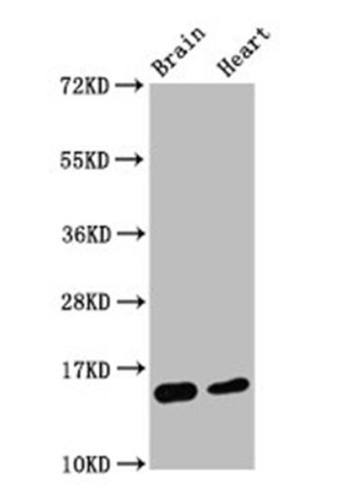 圖1. 使用0.55 ug/ml Histone H3.1K4me2單克隆抗體(貨號:A68400)檢測小鼠腦和心臟組織Histone H3.1K4me2蛋白表達水平,檢測到目的蛋白大小15 KDa。