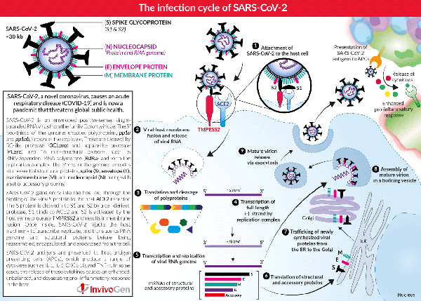 新冠肺炎已持續(xù)數(shù)月,法國天然免疫專家InvivoGen密切關(guān)注COVID-19與天然免疫相關(guān)的信息,病毒的感染周期、抗擊新冠病毒的潛在藥物靶點(diǎn)、可能相關(guān)的宿主免疫應(yīng)答通路,以及疫苗研發(fā)需要關(guān)注的部分整理成了4篇文章與大家分享。